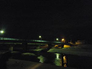 やははえろ会場から撮影した夜の谷地橋と野川。