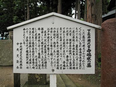 B立て看板には、長資の子で下長井郷代官寺嶋和泉守正貞とある。しかし、正貞の名は確認できない。何故かと言うとその次には、和泉俊喜左衛門長親とある。また、下永井郷郡史日之郡奉行ともある。