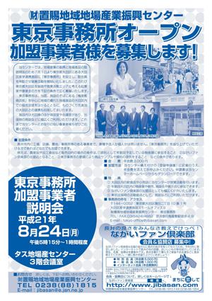 (財)置賜地域地場産業振興センターの東京事務所が東京・大田区にオープンしてもうすぐ2か月となります(*^ー^*) 地場産業の振興と地場産品の販路開拓のため営業活動に取り組んでおります。そこで、本日東京都大田区を販路や営業活動エリアと考える起業家や事業主の方へ向けた『東京事務所加盟事業所説明会』が行われます。東京事務所の施設の側にある活気ある「梅屋敷商店街」を中心に地域の優れた地場産品の販売、またものづくりのまち長井市とその先進地である大田区との連携を目指しています。是非お気軽にご参加下さい(@゚ー゚@)ノ 東京事務所加盟事業所説明会 ■日時:平成21年8月24日(月) 午後5時15分〜1時間程度■場所:タス地場産センター 3階会議室■お問合わせ:0238-88-1815(地場産センター)説明会に関する詳しい内容はこちらをご覧下さい!【この記事は、ながいファン倶楽部のブログです】☆毎月1日・15日にファン倶楽部会員様へメールマガジンを配信♪▼お申込はこちらから!