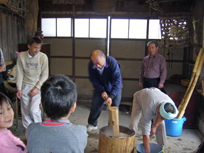 9月に秘伝豆の収穫をさせていただいた農家れすとらん なごみ庵さんで収穫感謝祭が行われました。▼収穫感謝祭のお知らせいつもは必要な予約もこの日は無しでOKv('▽^*)美味しい杵つき餅を500円でいただけるとあって、大勢の皆さんがいらっしゃいました。▼外は雨でしたが、囲炉裏には炭がくべられポカポカですもち米が蒸しあがるといい匂いが流れてきました。さっそく杵と臼を使って餅つきです(*^∇^*)数人で同時につく千本杵やこねる人との連携が絶妙な打ち杵で、ペッタンコペッタンコと餅つきが行われました。子供たちも大喜びです!▼もち米を臼に投入!▼千本杵はアカシアで作ったものだそうです▼同時につくのがコツだとのことこうしてついたお餅をお雑煮、納豆餅、じんだん餅のお膳としていただきました。▼お餅たっぷりのお膳 …待ちきれず撮る前にちょっと食べちゃいました( ̄ー ̄;じんだんは9月に収穫した秘伝豆で作ったものだそう。味が濃くてまろやかです。収穫を手伝ったから美味しさもひとしお(T_T)。ちなみに「じんだん」は宮城県などでは「ずんだ」と呼ばれている枝豆をペーストにして甘くしたの。同じ山形県内でも山形市周辺では「ぬた」とよばれています。長井市がある置賜地方と宮城県での呼び方が似ているのは、同じ伊達領だったからではないか?などとも言われているそうですよ。▼お店の中は杵つき餅に舌鼓を打つお客さんでいっぱい順番を待つお客様のためにひたすら杵つきの音が響き渡るなごみ庵でした。▼なごみ庵さんにはJR東日本の旅行プラン旅市でも訪れることがで きます。【この記事は、ながいファン倶楽部のブログです】☆毎月1日・15日にファン倶楽部会員様へメールマガジンを配信♪▼お申込はこちらから!