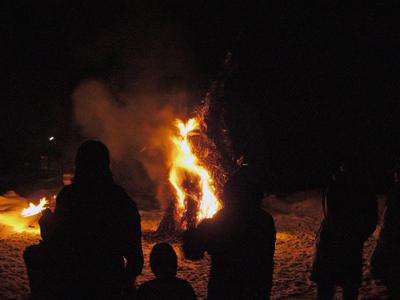 今年もヤハハエロの季節になりました。ヤハハエロ=斎塔焼(さいどやき)は長井市や周辺の町に伝わる小正月の大切な行事です('▽^*)小正月の宵、各集落ごとに藁などで作った大きなお斎塔に古いお札やお守り、正月飾りなどを入れて焚きあげ、豊作や無病息災などを祈ります。また燃えがらの火で煙草を吸うと虫歯にならない等とも言われているようです。※伊佐沢物語より▼お札集めは子供たちの仕事。日中に家々を回って集めていきます。 寒い中ごぐろさま〜。夜、真っ暗な中お斎塔の周りに人々が集まってきていよいよ斎塔焼が始まります(*^ー^*)▼お斎塔を取り囲む雪の壁にはろうそくも灯されていました▼健康を祈って体を拭いてきた身拭き紙も各々お斎塔の中にセット!▼そして…点火です!大きく燃える炎に向かって「ヤァ〜ハハァエロォ〜! センキセンバコ フットンデンゲ〜」などと掛け声をかけます。▼真っ白な雪原に大きな炎が神秘的です!以前は1月15日に一斉に行われていた為、近くの集落の斎塔焼の炎まで見えたり、「ヤハハエロ」の掛け声が聞こえたものですが、近年は各地域ごとに日程が違い、今年は1月9日〜17日の間に概ね行われるようです(*'-^*)▼玉こんにゃくやお酒が振る舞われ、子供たちにはご褒美のお菓子袋も!炎はひときわ大きく燃え上がると徐々に小さくなっていきます。▼約30分ほどで大きなお斎塔は燃え尽きましたその様子を見て、人々は三々五々帰っていきます。ただし、火の番の人にはこの後も火がなくなるまで見届ける大事な役割があります。斎塔焼の火にあたって、今年も健康に一年をすごしましょう(*^▽^*)【この記事は、ながいファン倶楽部のブログです】☆毎月1日・15日にファン倶楽部会員様へメールマガジンを配信♪▼お申込はこちらから!