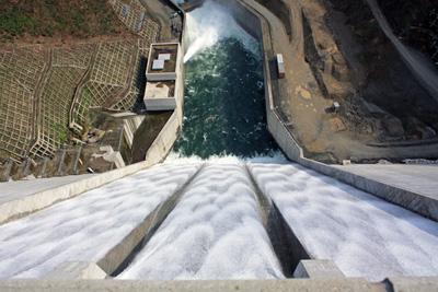 ▼【100年に1度の光景〜長井ダム最高水位到達!】