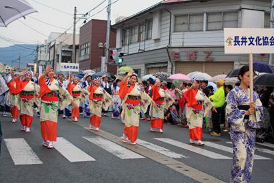 あやめ公園開園100周年記念事業の目玉として“長井おどり大パレード”が開催されましたヾ(^∇^)▼赤いオープンカーがパレードを先導します長井おどり大パレードは夏の長井を賑わすイベントとして昭和38年から続けられていた行事で、市内の企業や子供会、地域の団体がこぞって参加していました。その後徐々に参加者が減り、行われなくなっていたこのイベントを、あやめ公園の記念年に合わせ17年ぶりに復活させたのです(~∇~* )ノ▼そろいの法被や浴衣で粋に艶やかにパレードします今回の参加者は約2,000名。各々の団体ごとにそろいの浴衣や法被に身を包み、老若男女が長井駅から長井市役所までを「新長井おどり」を踊りながらパレードしました。▼大きな手づくりのプラカードを準備する団体も!▼ちびっこも頑張って踊りました懐かしいパレードを見ようと、雨にもかかわらず沿道には大勢の見物客が集まり、往年の賑わいを彷彿とさせるような盛り上がりをみせました(゚▽゚*)♪▼休憩時間には地元の舞踊団体による「長井音頭」やあやめ太鼓が 披露されましたパレードでは踊りが魅力的な女性を選ぶ「あや姫コンテスト」も行われ、約30名のあや姫を選出!選ばれた皆さんの写真は後日あやめ公園内のあやめ会館付近に展示されます。▼中にはユニークな衣装で参加する人たちもあいにくの雨で期待された部分月食とのコラボレーションは叶いませんでしたが、軽快な「新長井おどり」にあいのてを入れたり、手拍子を叩いたりと踊り手も見物客もパレードを満喫した楽しい一夜でした(*~∇~*)【この記事は、ながいファン倶楽部のブログです】☆毎月1日・15日にファン倶楽部会員様へメールマガジンを配信♪▼お申込はこちらから!