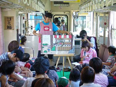 山形鉄道(株)フラワー長井線では8月22日(日)に読み聞かせ列車を行い、小さな子どもを中心に親子など約80名が参加しました。8月8日(日)に続き、この夏2回目の開催です(^-^*)▼午前10時20分に長井駅に集合▼参加者には可愛らしい乗車券が渡されました長井駅に集合した参加者は荒砥駅から走ってきた特別車両に合流、車内にはグリーンのカーペットが敷かれていて、参加者は靴を脱いで絵本の前に集合しました。▼ホームへの移動もまるで遠足みたいです(^▽^)▼かわいく飾られた読み聞かせ列車が到着しました長井駅から宮内駅までの間に、可愛らしいエプロン姿の山形鉄道の職員が「ふしぎなキャンディーやさん」と「わにわにのおふろ」の2冊を読み聞かせしました。子どもたちはみんな目を輝かせて絵本に見いっていましたよ(v^ー゚)▼丁寧に読み聞かせする山形鉄道の松山さんと横山さん 楽しい手遊びを交えながら車内を盛り上げました▼みんな絵本に目が釘づけです宮内駅に到着すると先日就任したばかりのうさぎ駅長の“もっちぃ”が参加者を出迎えてくれました。駅ではかき氷がプレゼントされ、子どもたちは輪投げやザリガニ釣りをして楽しみました。▼うさぎ駅長の“もっちぃ”▼かき氷をもらってニッコニコです絵本はもちろん、縁日のような駅でのイベントにみんな大満足!帰りの車内にはザリガニの入った容器を大切そうにかかえた子どもたちがたくさん乗っていましたo(*^▽^*)o~♪【この記事は、ながいファン倶楽部のブログです】☆毎月1日・15日にファン倶楽部会員様へメールマガジンを配信♪▼お申込はこちらから!