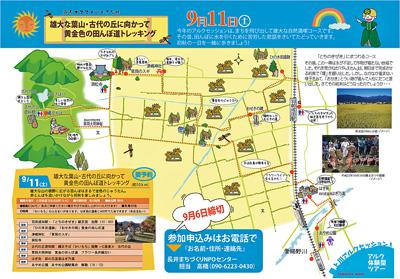 ♪あ・る・こ〜!歩こう〜 わたしは元気ぃ〜♪歩けば元気に!そして新たな発見が!…ということで、長井まちづくりNPOセンターでは今年もアルク体験型ツアー「最上川アルクセッション」を開催します。今年は雄大な葉山に向かって黄金色の田んぼ道を古代の丘を目指し歩きますよ。地元では“草岡ハイウェイ"と呼ばれるまっすぐ、且つ地味な上り坂を歩くなんて!と及び腰の人もいるようですが、本格的なトレッカーの皆さんにものんびり歩きたい人にも満足してもらえそうなコースです(^_^)。参加費無料!ご希望の方は9月6日(月)までお申し込みください!最上川アルクセッション「雄大な葉山・古代の丘に向かって黄金色の田んぼ道をトレッキング」い つ:平成22年9月11日(土) 午前9時40分 山形鉄道羽前成田駅集合申 込:長井まちづくりNPOセンター 高橋(090-6223-0430)詳しくはこちらから(PDF)【この記事は、ながいファン倶楽部のブログです】☆毎月1日・15日にファン倶楽部会員様へメールマガジンを配信♪▼お申込はこちらから!