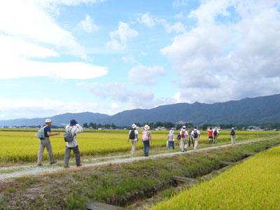 ▼【雄大な葉山・古代の丘に向かって黄金色の田んぼ道トレッキング】