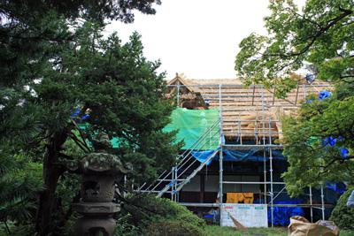 文教の杜ながいでは旧丸大扇屋母屋の茅葺屋根の修繕工事を行っています(=゚▽゚)/ 最近ではなかなか見られなくなった茅葺屋根だけに、葺き替え作業もレアな光景!そんな珍しい作業を長井小学校の4年生が見学すると聞き、私たちも見せてもらいに伺いました。▼見学に訪れた長井小4年生の皆さん。2クラスずつに分かれて見学 しました。母屋が建てられたのは明治23年(1890年)のこと。これまでも“さしがや”と呼ばれる部分的な改修は行ってきましたが、屋根全体を葺き替えするのは建造以来初めてのことだそうですw(゚o゚*)w▼ヘルメットをかぶり屋根に登っていきます今回の葺き替えには山茅と葦を6,000束ほど使用する予定とのこと。職人さんのお話では、水切りと呼ばれる軒先の部分には葦を、その他の部分に山茅を使うのだそうです。「山茅20年 葦40年」と言われていて葦の方がずっと丈夫なのだそうですよ(゚〜゚)▼熱心に話を聞く小学生の皆さん小学生の皆さんは「茅は何本ぐらい使うんですか?」「材料はどこからもってきたのですか?」等と熱心に質問していました。茅の厚さは屋根の場所によって違うそうですが、45度の角度で下向きに葺くのポイントだそうで、そうすることによってうまく水を逃がし、浸透や漏れを防ぐことができるのだとか!長い時間をかけて育まれ、伝えられている技術のすごさに驚くばかりですヽ(^◇^*)/▼慣れた手つきで作業を進める職人の皆さんん葺き替え工事は10月末まで行われる予定です。明日は一般の方を対象に見学会が行われます。申込締切は過ぎてしまいましたが、まだ少し人数に余裕があるとのこと。当日でも見学させてもらうことができるかもしれないそうなので、興味のある方は文教の杜ながいまでお問い合わせください。日時:平成22年9月25日(土) 1回目 午前10時から正午(午前10時までにお出でください) 2回目 午後1時から同3時(午後1時までにお出でください) 会場:文教の杜ながい内 旧丸大扇屋母屋 定員:各回先着50人問合:文教の杜ながい PHONE 0238-88-4151お庭にはムラサキシキブやキンモクセイが花盛り。ただし例年より多く発生しているという蚊もたくさんいて、見学を待つ小学生たちも格闘していました(^▽^;) 丸大扇屋はこの工事の為に現在は見学できませんが、11月から再び開館する予定です。新しくなる茅葺屋根を楽しみに待っていてくださいね♪【この記事は、ながいファン倶楽部のブログです】☆毎月1日・15日にファン倶楽部会員様へメールマガジンを配信♪▼お申込はこちらから!