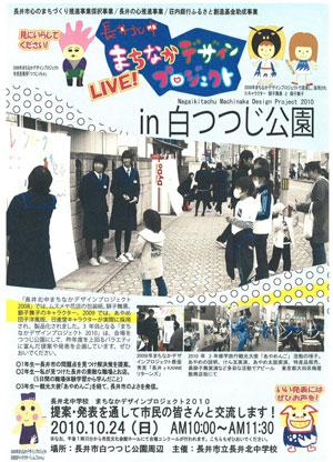 長井北中学生によるまちなかデザインプロジェクトが今年も10月24日(日)の10:00から行われます(^O^)これは長井北中学校の全校生徒さんで行っているプロジェクトで町の活性化のために長井市の問題点を見つけ解決策を提案、発表する企画です(^▽^)実際に今までの活動の中で2008年にはムスメヤ花店の包装紙、獅子舞黒、獅子舞子のキャラクター2009年にはあやめ団子洋風版、日進堂のキャラクターを提案し採用され製品化されました(^^)/今年もバラエティに富んだ提案や発表を企画していますのでどうぞお越し下さい。今年の会場は白つつじ公園になります(゚▽゚)ノ″■日時:2010年10月24日(日) 10:00〜11:30■場所:白つつじ公園周辺■主催:長井市立長井北中学校【この記事は、ながいファン倶楽部のブログです】☆毎月1日・15日にファン倶楽部会員様へメールマガジンを配信♪▼お申込はこちらから!