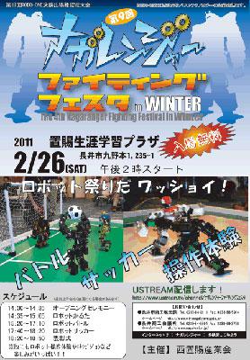 巷では付録のパーツを組み立ててハイスペックなロボットを作る雑誌が話題のようですが、「こういうのよく見かけるけどなぁ…」と感じるのは長井市ではずーーーーーーっと前からロボットプロジェクトに取り組んでいるからでしょうか(^_^;)ということで、今回で9回目となるナガレンジャーファイティングフェスタが今週末に開催されます!▼昨年産業祭でのロボットバトルの様子二足歩行ロボットによる白熱のバトルやサッカーのほか、ロボットの操作体験コーナーもあり、見て、触って楽しめる内容になっています。ご家族やお友達とふるってご参加ください。当日はUSTREAMでのインターネット中継も行います。www.ustream.tv/詳しくはこちらから(長井市・PDF)ナガレンジャーファイティングフェスタ in WINTER日時:2011年2月26日(土) 午後2時スタート場所:置賜生涯学習プラザ(長井市九野本1235-1)入場無料!【この記事は、ながいファン倶楽部のブログです】☆毎月1日・15日にファン倶楽部会員様へメールマガジンを配信♪▼お申込はこちらから!