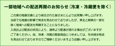 ネットショップやまがたタス物産館では本日より東北と関東の一部地域、および冷凍便・冷蔵便の商品を除いて商品の発送を再開することになりました。入荷や運輸の状況により、通常より配達が遅れる場合がございますがご了承くださいますようお願い申し上げます。地震後の混乱の中でも、多くの地元業者は可能な限りいつも通りに商品を製造するように努力しております。私たちもお客様のもとにできるだけ早くお届けできるように努めてまいりますので今後ともよろしくお願い致します。▼ネットショップやまがたタス物産館はこちら“彼岸荒れ”とでもいうような猛吹雪の昨日から一転、青空の広がる山形県長井市です。昨日は仙台市でも6cmの積雪があったと聞きました。陸運も空輸も今日の天気ならスイスイと動けそうで安心です。▼青空が広がっていい天気です市内でも少しずつタンクローリーを見かけるようになりました。あくまで被災地優先なので徐々にですが燃料の供給が再開しているようです。こういった状況の中、徒歩やバス(減便されていますが)で通勤している人も増えている様子。本当に困っている人に物資が行き届くように、これからも冷静な対応をしていきたいものです。今朝の計画停電は中止。東北電力では明日からの3連休も停電は行わないそうです。一人ひとりが節電に努めていきましょう(@^∇゚)/長井市では市民の皆さまから被災地への義援金、救援物資を募っています。長井市役所1階 長井市福祉事務所までご持参ください。詳しくはこちらから(長井市ホームページ)その他被災地への義援金についてはこちらから地震関係Q&A(山形県ホームページ)仙台、東京、大阪、新潟と山形間の移動手段(山形県ホームページ)吉村美栄子山形県知事メッセージ3月17日付((山形県ホームページ)計画停電について(東北電力ホームページ)「東北地方太平洋沖地震/山形から復興支援ノート」はこちら【この記事は、ながいファン倶楽部のブログです】☆毎月1日・15日にファン倶楽部会員様へメールマガジンを配信♪▼お申込はこちらから!