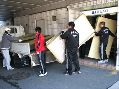 山形は被災地である宮城県、福島県の隣県であるため、救援活動の中心地域として各地でボランティア活動が活発に行われています。長井市でも被災者の受け入れを行っており、現在は長井市置賜生涯学習プラザ、長井市勤労センター、多目的研修センター向山荘に避難場所が設置されています。▼本日避難場所である勤労センターに畳60枚が運ばれました。ボランティアとして集まっていただいたのは地元の高校生総勢約30名。米沢中央高校の柔道部の皆さんと長井工業高校のサッカー部、軟式テニス部の皆さんです。▼運ぶ前の打合せ風景畳を1枚ずつ持って狭い階段を下り、3階から外のトラックまで一生懸命運びます。柔道部は『訓練も兼ねて』ということで「サッカー部は柔道部の訓練のため1枚ずつ!」…との声があがり、柔道部は一気に何枚もの畳を運んでいましたw(゚o゚)wまた、男の子に紛れて女の子も一生懸命力仕事に励んでいました。▼用意された大きなトラックにも1回では乗り切れないほどの畳が運ばれ 2回に分けて避難所まで運ばれました。ボランティアの高校生は勤労センターまでいき、畳を下ろす作業も行いました。これからさらにたくさんの避難者の受け入れができるよう、市では避難場所を増やす体制もとられるようです。それに伴って長井市災害避難者支援ボランティア本部では、市民の皆さんや企業・団体などのボランティアの受付を行っています。市民の皆さんのご協力をよろしくお願いします。※受付時間:8:30〜17:15お問い合せ先:長井市災害避難者支援ボランティア本部TEL 0238-84-2111(内線361)義援金・救援物資について(長井市ホームページ)その他被災地への義援金についてはこちらから地震関係Q&A(山形県ホームページ)仙台、東京、大阪、新潟と山形間の移動手段(山形県ホームページ)計画停電について(東北電力ホームページ)「東北地方太平洋沖地震/山形から復興支援ノート」はこちら【この記事は、ながいファン倶楽部のブログです】☆毎月1日・15日にファン倶楽部会員様へメールマガジンを配信♪▼お申込はこちらから!