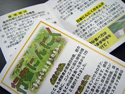 はるか昔から山岳修行の修験者が食べていたという幻の山菜・行者にんにく。栄養満点でその上おいしいこの行者にんにくのご注文受付が始まっています。なぜ“幻”なのかというと、収穫できる期間が1年のうちたったの2週間程度、しかも!栽培しようと思っても最初の5年間は収穫できないそうで、良いものを手に入れるのがなかなか難しい…からのようです(^皿^)※ちなみに行者にんにくの栄養と美味しさをより手軽に長く楽しみ たいとの思いから開発されたのが行者菜です。▼幻の山菜・行者にんにく〜こんな感じで発送しますおひたしはもちろん、炒め物にもピッタリな行者にんにくはご家庭のメニューの幅を広げてくれること間違いなしですよ(*^ー゚) ご購入の方にはビギナーでも安心な簡単レシピを添えてお送りします。▼豚肉とは相性ピッタリ!発送は4月中旬から5月初頭を予定しています。大雪のせいで今年は少し遅くなるかもしれませんが、一番美味しい時期にお届けしますのでぜひお試し下さい。▼簡単レシピはこちらからもどうぞ行者にんにくのお求めはこちらから(先着300箱限定です)震災における長井市の対応はこちらから(長井市ホームページ)▼支援の輪が広がっています長井市災害避難者支援ボランティア本部のブログはこちらから社団法人長井青年会議所のホームページはこちらから長井青年会議所事務局長ブログはこちらから長井市生活情報マップはこちらから被災地への義援金についてはこちらから地震関係Q&A(山形県ホームページ)仙台、東京、大阪、新潟と山形間の移動手段(山形県ホームページ)計画停電について(東北電力ホームページ)「東北地方太平洋沖地震/山形から復興支援ノート」はこちら【この記事は、ながいファン倶楽部のブログです】☆毎月1日・15日にファン倶楽部会員様へメールマガジンを配信♪▼お申込はこちらから!