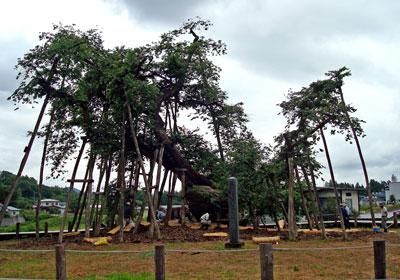 毎年綺麗な花を咲かせ、多くの観光客も訪れる伊佐沢の久保桜。国の天然記念物で長井市民の誇りです(゚▽゚*)樹齢1200年の老木の元気を回復するために、不定根を発生させる作業も5年目を迎えています。そして今年も横浜市から樹木医(NPO法人自然への奉仕者・樹木医協力会)の皆さんを招いて、昨日と今日、市民とともに樹勢回復作業が行われました。▼今年は大雪の影響で開花が遅くなりました昨日は地元伊佐沢小学校の皆さんも参加し、縦穴式土壌改良に挑戦!直径30cm、深さ1mほどの円筒型の穴をあけ、そこに腐葉土や木炭などを入れ、液体肥料を流し、空気や水の浸透を良くするために節を抜いた竹をさす…という作業を児童の皆さんが行ったそうです(*^▽^*)▼これ!…一瞥しただけではわからない縦穴(^^;) この縦穴を幹の周りに20ヶ所つくりました今日は樹木医の5名の皆さんが中心となって、敷き詰めた落ち葉の上に菰(こも)を張る作業・マルチングを行っていました。治療?に使用する材料は基本的に天然のものばかり、時間とともに自然に還っていくそうです(*^ー゚)▼丁寧に菰を敷きます樹勢回復には時間がかかり、この作業の効果がわかるのはずっと先のことだとのこと。それでも久保桜の美しさを後世の人にも楽しんでもらうために、未来を育てるような作業がこれからも続けられていきます。▼樹勢回復作業の様子は久保桜のそばにパネルで紹介されています昨年の作業の様子はこちらからどうぞ【この記事は、ながいファン倶楽部のブログです】☆毎月1日・15日にファン倶楽部会員様へメールマガジンを配信♪▼お申込はこちらから!*.*:*.*:*.*:* がんばろう東北!がんばろう日本! *.*:*.*:*.*.*ながいファン倶楽部チャリティーポストカードセットはこちらから震災における長井市の対応はこちらから(長井市ホームページ)長井市災害避難者支援ボランティア本部のブログはこちらから長井市でも支援の輪が広がっています→こちらからどうぞ長井市生活情報マップはこちらから