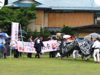 やまがた花回廊キャンペーンとクラブツーリズム、そして長井市があやめまつりで盛り上がる長井市に大勢の観光客の皆さんをお招きする長井あやめにぎわい市が今年も6/25(土)、26(日)に開催されます。首都圏を中心に約1,000人の皆さんが訪れる予定ですv(*'-^*)▼開会式初日の今日はあいにくの小雨模様となってしまいましたが、ようやく咲きそろい始めた園内には、雨にしっとりと濡れて楚々と咲くあやめを楽しむために、たくさんの方が訪れていました。▼ようやく咲きそろい始めました長井あやめにぎわい市では特設会場で長井市の美味しいものを販売!また、伝統芸能の黒獅子やあやめ太鼓(26日のみ)のパフォーマンスもあります。▼總宮神社の黒獅子の舞い▼特産品コーナー▼やまがたタス物産館も出店しています▼ecoカー?ほかにも園内ではよさこいソーランやフラダンス、三味線ライブ等、市民による手づくりイベントも開催中です。25日(土)の夜は赤ちょうちんの屋台もありますよo(*^ー゚)▼今日は愛の武将隊によるパフォーマンスも行われました▼週末は野点茶会も行っています▼あやめをイメージしたお菓子です子どもから大人まで誰もが楽しめる長井あやめにぎわい市は、明日まで長井あやめ公園で開催中です。ぜひお集まりください!イベントスケジュールはこちらから(長井市観光協会)あやめの開花をLIVEでチェック!(ライブカメラ:長井市観光協会)【この記事は、ながいファン倶楽部のブログです】☆毎月1日・15日にファン倶楽部会員様へメールマガジンを配信♪▼お申込はこちらから!*.*:*.*:*.*:* がんばろう東北!がんばろう日本! *.*:*.*:*.*.*ながいファン倶楽部チャリティーポストカードセットはこちらから震災における長井市の対応はこちらから(長井市ホームページ)長井市災害避難者支援ボランティア本部のブログはこちらから長井市でも支援の輪が広がっています→こちらからどうぞ長井市生活情報マップはこちらから