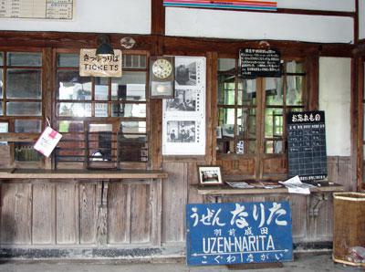 ▼【駅の中が懐かしく復活〜羽前成田駅】