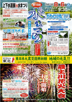毎年8月の第1土曜日は水の祭典“ながい水まつり”の日です(ノ*^▽)ノ今年で18回目になります。最上川左岸の河川緑地公園(舟場)を会場に、かわとぴあ2011 in 長井、上下水道展 in 水まつり、サマーフェスタ2011などの水にまつわる様々なイベントが同時に開催されます(^∇^)長井ダムの見学会や魚のつかみどり大会、カヌー体験、水鉄砲大会など子どもから大人まで楽しめるイベントが盛りだくさんです。▼昨年の様子カヌー体験魚つかみどり大会バックホウ操作体験他にも完熟マンゴーが毎年大人気の沖縄県金武町交流物産展やフリーマーケット、市内のお店や団体が美味しいものを販売するカラフルテントの売店も充実の内容ですv(*'-^*)夜には年に1度のお楽しみ、最上川花火大会も開催されます。▼昨年の会場の様子夕方からは恒例の「ゆかた」のにあう女性コンテストも行います。素敵なゆかたでドレスアップして夏の夜を楽しみましょう!▼あつまれ、ゆかた美人!詳しくはこちらから(長井市観光協会)【この記事は、ながいファン倶楽部のブログです】☆毎月1日・15日にファン倶楽部会員様へメールマガジンを配信♪▼お申込はこちらから!☆長井市プレミアム商品券(大判・小判プレミアム長井)販売中☆販売数量は残り 1,500セット です(平成23年8月5日現在)*.*:*.*:*.*:* がんばろう東北!がんばろう日本! *.*:*.*:*.*.*長井市生活情報マップはこちらから