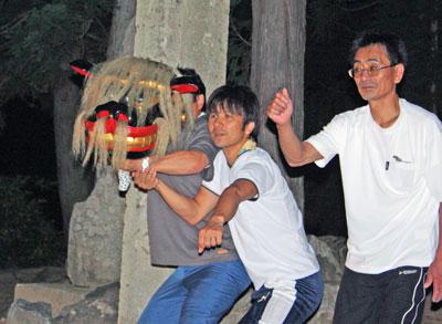 8月になると長井市内のいたる神社で例祭が行われます。黒獅子まつりでも素晴らしい活躍を見せた草岡の津嶋神社では8月15日、16日に例祭が行われ、16日には12年ぶりの警護交替も行われます。津嶋神社の警護は昔から任期が約10年と決まっており、草岡ほど丁寧な警護交替を行うところは他にないのだそうです(*゚O゚)新警護はなにで決めるのか…。というと警護交替は相撲をとって決めます。本番は8月16日に行われ、それまでみっちりと練習が行われます。昨日は獅子の足踏み練習が行われていたのでちょこっとお邪魔してきました!▼練習風景いつも黒獅子まつりや例祭でしか獅子舞を見たことがなかったので練習風景というのは新鮮でした(゚▽゚)▼新警護と獅子の一気打ち練習が始まると皆さん真剣に獅子振りをし、「休憩しろは〜」と声がかかっても練習をやめません。情熱を感じます(^^)b!!ちなみに皆さん軽々と持ち上げるこの獅子頭。あなどっていましたが持たせてもらってビックリ!大きいものだと10kgくらいあるそうで、肩の高さまで上げるのもやっとでした(^^;)今日から12日まで幕に入っての練習、14日は総練習が行われ、15日、16日の例祭に備えます!12年ぶりの警護交替ということで今年大注目の神社です!第22回ながい黒獅子まつりDVD予約はこちらから【この記事は、ながいファン倶楽部のブログです】☆毎月1日・15日にファン倶楽部会員様へメールマガジンを配信♪▼お申込はこちらから!☆長井市プレミアム商品券(大判・小判プレミアム長井)販売中☆販売数量は残り 1,015セット です(平成23年8月10日現在)*.*:*.*:*.*:* がんばろう東北!がんばろう日本! *.*:*.*:*.*.*長井市生活情報マップはこちらから避難者支援事業所一覧(ながいタウンなび)