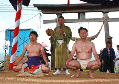 ▼【白熱の警護交代劇〜草岡津嶋神社の花相撲】