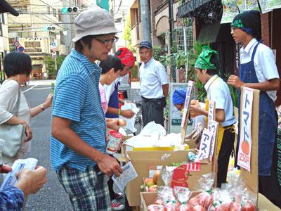 長井市立長井南中学校の2年生は現在、関東地方への修学旅行の真っ只中。政治と経済の中心地で様々な場所を見学、そして東京ディズニーリゾートを訪ねたりと楽しい思い出をいっぱい作っています。そんな修学旅行の初日である昨日7日、先日も紹介した通り、生徒の1グループ(32名)が新宿区の早稲田商店街で、郷土の地場野菜・果物&お菓子の販売体験を行いました。昨年に続き2度目の開催です。▼たくさんの商品を準備しました商品は前日に送り、場所を提供してくれる安井 浩和さんのお店(こだわり商店)に無事到着!していたのですが…ハプニング発生!!▼こだわり商店と山吹の里の2か所に販売ブースを設置バスの遅れで肝心の中学生たちがやってきませんΣ( ̄Д ̄;)遅れること約45分!ようやくついた生徒の皆さんが懸命に準備し、予定より30分遅れの15時30分から販売を開始しました(〃´o`)=3(そういえば昨年もこんなことがあったような…旅にアクシデントはつきものです^^;)▼大勢のお客様があつまりましたいざ販売をスタートすると、生徒の皆さんはそのセールス手腕を存分に発揮!大きな声で宣伝し、たくさんのお客様を集めました(^▽^)加藤 芳秀校長も自ら声を出してPR!その積極的な様子には多くの修学旅行生を見てきた安井さんも感動したそうです。▼PRにも余念がありません約1時間の販売時間に、トマトやきゅうり、アスパラガスなどの野菜やりんごやぶどうなどのフルーツ、うさぎ玉などの郷土菓子を販売した南中生の皆さん。安井さんがお世話してきた全国各地の学校の販売体験の中でも過去最高の売上を記録したそうです(≧∇≦)bスゴイ!!▼販売上手な南中生の皆さん会場では東日本大震災の被災地の為の募金も行いました。震災をうけて、今回の修学旅行は例年より1日短い日程に変更。緊急時に備えて、これまでの新幹線移動を取りやめバスで旅行することになりました。半年たった今でも様々なことに影響を与え続けています。今回の販売体験の利益は、募金にお寄せいただきた皆さんの温かいお気持ちと併せて被災地に寄付するそうです(*^▽^*)▼大隈講堂前で安井さんと記念撮影南中生の皆さんお疲れさまでした。思い出をいっぱい作って無事に長井市に帰ってきてくださいねヾ(^∇^)(( お ま け ))早稲田大学演劇博物館前にある“講義中の坪内逍遥”の銅像。さし伸べられた右手に握手すると早稲田大学に合格できるとの都市伝説があるそうですが、例にもれず南中生の皆さんも次々と握手を求めていました(^皿^)この中に5年後には学生としてこの地を踏む人も多くいるかもしれませんね。▼平成ティーンの握手攻めにあう直前の明治の文豪・坪内逍遥翁… その後の運命を知る由もありません(^^;)【この記事は、ながいファン倶楽部のブログです】☆毎月1日・15日にファン倶楽部会員様へメールマガジンを配信♪▼お申込はこちらから!☆長井市プレミアム商品券(大判・小判プレミアム長井)完売致しました☆お買い上げありがとうございました。商品券の有効期限は平成24年1月3日までとなります。お使い残しのないようよろしくお願いいたします。*.*:*.*:*.*:* がんばろう東北!がんばろう日本! *.*:*.*:*.*.*長井市生活情報マップはこちらから
