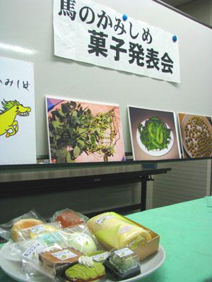 今年で3回目となる「馬のかみしめ」を使ったスイーツの発表会が行われました。ネットショップやまがたタス物産館でも馬のかみしめから作られた味噌や納豆など販売させていただいていますが、馬のかみしめはスイーツとしても美味しくいただけることで馬のかみしめ生産者の会の皆さんと長井菓匠倶楽部の皆さんにより毎年新しいスイーツの発表会が行われています。こちらが本日紹介された新作の数々(^▽^)♪▼松屋 モンブラン風ケーキ香りがとてもよく、見た目も上品!中にも馬のかみしめが入っていました。▼懐郷菓子 水上屋 カップケーキフワフワの生地を一口食べると馬のかみしめの風味広がります。素材を生かしたスイーツです(^▽^)▼創菓処 日進堂 水ようかんとまんじゅう水ようかんは砂糖を少なめにしているにも関わらずとっても甘くて濃厚!まんじゅうは皮に米粉を使用しており、素材にこだわっていらっしゃいました(^^)▼許リ村家本店 馬のかみしめパンその1乾燥豆を生地に練り込み、さらに中には煮豆が入っています!煮豆という発想に驚きましたがとても美味しくいただきました(^^)▼これらの新作を含め今日は10種類のスイーツが紹介されました。▼ビックリしたのがこちら和菓子司 風林堂の伊佐沢ロール中には伊佐沢産であろうホップを使ったビールのゼリーが入っています。枝豆にビール...(゚_゚)黄金の組み合わせがお菓子でも実現(^O^)甘さの中にアクセントがあってとても面白いスイーツでした。昨年一昨年と開発されたスイーツはそれぞれの店舗で販売されており評判も上々とのこと(^▽゚*)▼美味しいものを食べている時は幸せな気分になるものですね(^U^)▼どれから食べようか悩んでしまいます「馬の噛んだような跡」があることからその名前がついた「馬のかみしめ」(^^)そんな面白い外見がウリで、味も風味もよく、こんなに幅広い用途をもっていますが手間がかりでなかなか収量もとれなくて栽培が難しいのだそうです(´`)生産者の会のみなさんによって絶えずに生産され、加工業者の方々がいろんな分野の商品を開発して下さり知名度もどんどん上がってきています!長井の「馬のかみしめ」が庄内のだだちゃ豆のように有名になっていったら嬉しいですね(^O^)/馬のかみしめの商品はこちらから...☆【この記事は、ながいファン倶楽部のブログです】☆毎月1日・15日にファン倶楽部会員様へメールマガジンを配信♪▼お申込はこちらから!▼つぶやいています☆長井市プレミアム商品券(大判・小判プレミアム長井)完売致しました☆お買い上げありがとうございました。商品券の有効期限は平成24年1月3日までとなります。お使い残しのないようよろしくお願いいたします。*.*:*.*:*.*:* がんばろう東北!がんばろう日本! *.*:*.*:*.*.*長井市生活情報マップはこちらから