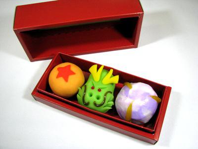 今年も残すところあと1ヶ月を切り、来年の干支『辰』に関係する商品などよくお店で見かけるようになりました。毎年風林堂さんで作ってくださる干支和菓子も完成ということでいち早く持ってきて下さいました(^O^)今年の『うさぎ』とはうって変わって『たつ』はなんだか複雑で難しそうだと思っていたのですがとってもポップなかわいらしい和菓子でした('▽'*)▼まさに芸術品ですね(^^)世界的人気を誇る日本のアニメ『ドラゴンボール』にちなんだドラゴンと宝玉の和菓子です。色も鮮やかで子どもにも喜ばれること間違いなしですね!3個入り1セットで大きさは大小2種類あります。やまがたタス物産館で購入いただけるほかお買い物していただいた金額に応じてプレゼントいたします('▽^)【この記事は、ながいファン倶楽部のブログです】☆毎月1日・15日にファン倶楽部会員様へメールマガジンを配信♪▼お申込はこちらから!▼あやめちゃんのなう☆長井市プレミアム商品券(大判・小判プレミアム長井)完売致しました☆お買い上げありがとうございました。商品券の有効期限は平成24年1月3日までとなります。お使い残しのないようよろしくお願いいたします。*.*:*.*:*.*:* がんばろう東北!がんばろう日本! *.*:*.*:*.*.*長井市生活情報マップはこちらから