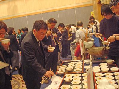 昨日2月15日に山形市のパレスグランデールで「米粉で元気になろう!米粉でひとつになろう!やまがた米っ粉フェスタ」が行われました。山形は全国でも有数の米どころ。確かにのどかな山形県では「見渡す限り一面田んぼ」もよく見る風景です(^^)つや姫、はえぬきをはじめとした高品質のお米を生産も活発!しかし、実は一人当たりの年間消費量はピーク時の半分以下の58sまで減っているのだそうです(´`)▼そこで最近注目されているのが「米粉」!県では「やまがた米っ粉クラブ」を設立し、米粉食品をみんなに知ってもらい、消費拡大を図る県民運動を展開しているんです。そして、米粉の魅力と可能性、多様な米粉食品を楽しんでいただくためこのコンクールが開催されたそうです。米粉を使い、小麦粉の代わりにパンや麺、お菓子、お惣菜などの作品を対象として食品製造、飲食業、農産加工業の方々がそれぞれ開発した作品をエントリー!優れた作品は表彰するとともに、テレビやインターネットホームページ、情報誌への掲載なでどで県内外に広くPRされるそうですp(^O^)q▼そしてなんと最優秀賞(山形県知事賞)には長井市から 吉田製粉株式会社の「手軽に飲むだけ玄米食」が表彰されました!!ちなみに今回のエントリー数は44事業所から57点もの応募数がありました。▼入賞作品はこちらです(^^)■最優秀賞(山形県知事賞) 吉田製粉株式会社(長井市)「手軽に飲むだけ玄米食」■おいしい山形賞 まっすぐ屋(川西町)「米粉シフォンケーキ」■優秀賞 <パン・惣菜・麺等部門> ・株式会社山形グランドホテル(山形市)「ホテルの味噌パン」 ・有限会社すがわら製麺(鶴岡市)「つやひ麺」 ・株式会社ヤマゲンフーズ(新庄市)「たこ米(米)」 ・三和油脂(天童市)「つや姫パスタ」 <菓子部門> ・ケーキハウス チュチュ(山形市)「お山の形のサブレ」 ・菓子工房ふくや(鶴岡市)「つや姫ラスク(しみチョコ)」 ・菓匠萬菊屋(南陽市)「NANJO da BE なんじょだべ」 ・山形県立置賜農業高等学校 紅大豆本舗(川西町)「マドローム★紅ダリ」表彰式が終了するとトークショー「広がる米粉のメニュー、ご家庭から、厨房から!」が行われました。ゲストはあの日本テレビ「キューピー3分クッキング」の料理研究家 小川 聖子先生と「やまがた米っ粉クラブ」の推進リーダーでもあるアル・ケッチャーノオーナーの 奥田 政行シェフです。米粉はとてもヘルシーであり、実際揚げもので比べてみると小麦粉で作った時の油の吸収率は65%に対し、米粉の場合は45%に減るのだそうです。また、グラタンを作ってみても小麦粉の場合681kcalに対し米粉の場合は545kcalと大幅にダウン!!健康、ダイエットを気にかけている方は注目です!米粉を使えば揚げものもカラッと揚がり、とっても美味しくできるのだとか(^p^)家庭のキッチンに小麦粉・片栗粉そして「米粉」を置いて下さい!と小川先生はおっしゃっていました。また、奥田シェフは「山形は食材の宝庫であり世界トップクラス」だとおっしゃいました。実は米粉は海外でも人気で普通のパスタには見向きもしないのに米粉パスタには人だかりができるほど世界でも注目されているんです!(゚Д゚)そんなお米大国の山形県民もビックリするお話をクッキングデモンストレーションも織り交ぜながら教えていただきました。▼ところかわって交流会ではコンテストにエントリーした作品含め 62点の作品の試食会が行われました。もちろん吉田製粉さんの「手軽に飲むだけ玄米食」やあやめそば舟越さんの「こめこ紅きり」紅花さんの「米粉メンチカツ」、「あんかけ米粉麺べに花入り」ベーグルポコさんの「米粉ベーグル(ごま、抹茶)」白山堂芳賀さんの「レインボー野菜創菓じゃがまん」など長井市からもたくさんの米粉食品が並んでいました!▼紅花さん▼ベーグルポコさん▼白山堂芳賀さん…そして気になる吉田製粉さんの手軽に飲むだけ玄米食のもとへ...ヾ(^▽)ノ▼きれいどころがお出迎えしてくださいました(^^)山形県産の特別栽培米を100%使用していて通常の米に比べて農薬と化学肥料は使用料半分!特別米はえぬき玄米使用証明書も認定されています。1日大さじ2〜3売を目安にお湯やお茶、ホットミルクに入れてもお味噌汁に入れてもおいしくいただけます。なんといってもお手軽!!▼今回はホットミルクバージョンでいただきました(*^^*)見た目はココア...(゚゚)一口いただくと...(゚▽゚)!!ココアのような優しい味がしました♪(^O^)ネットショップやまがた物産館でも今後販売予定です!!乞うご期待(^^)/~~【この記事は、ながいファン倶楽部のブログです】☆毎月1日・15日にファン倶楽部会員様へメールマガジンを配信♪▼お申込はこちらから!▼ツイッター*.*:*.*:*.*:* がんばろう東北!がんばろう日本! *.*:*.*:*.*.*長井市生活情報マップはこちらから