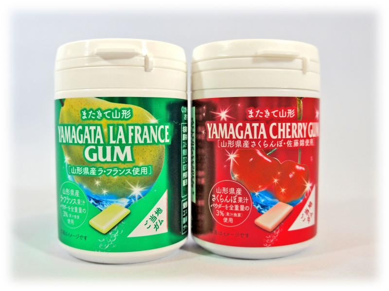 さまざまなご当地商品がありますよね〜(*^-^*)王道の銘産品や「おもしゃい」ものからB級グルメ、そして「??」な物まで♪今回は、山形名産『さくらんぼ』・『ラ・フランス』をガムにしちゃったそうです(@@)つまり・・・↓↓収穫されて工場に運ばれ〜〜↓完成!こう言うことですね(*^-^)bさくらんぼの味が凝縮され噛むたびにジューシーな風味がお口に広がります。ラ・フランスもきっと…↓↓加工されて・・・↓美味しくできました(☆^-^)vラ・フランスガムは、あま〜いラ・フランスとりんごを一緒に食べてると錯覚する甘さの中に爽やかな酸味があるフルーティーな味です。ご当地のチョコやキャラメル・飴等と同じようにお土産の定番!となるハズです♪また『山形』きて!楽しんで!お土産に『ご当地ガム』という流れを期待して・・・みなさんの訪れをお待ちしています♪*゜?。+*?*゜?。+*?*゜?。+*?*゜?。+*?*゜?。+*?*゜?毎月1日・15日にファン倶楽部会員様へメールマガジンを配信中♪▼ながいファン倶楽部会員登録はこちらから*゜?。+*?*゜?。+*?*゜?。+*?*゜?。+*?*゜?。+*?*゜?▼twitter▼お買物はここ!ネットショップやまがたタス物産館※会員登録してからお買い物するとオトクですよ♪ 新規入会で300pt進呈中です(〃〃)
