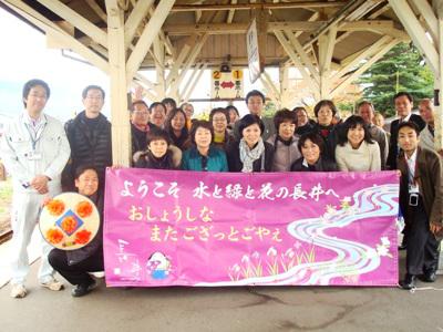 11月10日(土)〜11日(日)の2日間、紅葉が見ごろを迎え、冬の足音が聞こえる長井市に大田区の皆さん24名がいらっしゃいました!『第3回 大田区交流事業 秋の長井をまるかじり 田舎(いい仲)実感癒し旅』のツアーで2日間通して山形県長井市を“見て・知って・体験して・食べて”いただきました(*^-^)ノヽ(゚▽^*)東京駅を朝8時に出発し、山形新幹線で南陽市赤湯まで、そこから山形鉄道フラワー長井線に乗って長井市入り♪▼フラワー長井線では方言ガイドが沿線をPR♪乗車中に移動販売のサービスもあったそう(@@)長井市羽前成田駅で下車、農家れすとらん「なごみ庵」へ!初顔合わせと交流を兼ねた昼食と『うちまめ』をつくる体験会場です!▼ようこそ長井へ長井のごっつぉ(ご馳走)、うまそうだべ?▼うちまめを作ろう!@乾燥させた豆をほろぐ(落とす)A石の上に豆をおいて木槌で打つ以上で、できあがり♪単純ですが、料理に使うと味があって美味しいんですよ〜!○うちまめ(打ち豆)とは→長井では青大豆を石の上でつぶし、乾燥させたものです。 古くから豆の保存食としてつくられ、煮物などに使われてきました。体験後、長井のまち歩きに出かけました!ちょっと散り気味な所もありますが、紅葉は今が見ごろ!ナイスタイミング(*^-^)b▼丸大扇屋きれいな紅葉をバックに『ハイ、チーズ!』▼つつじ公園▼やませ蔵幻想的☆この頃には初対面のツアーの皆さんも現地のスタッフも緊張がほぐれ、秋の長井を感じてリラックスしていらっしゃる様でした(*^-^*)だんだん暗くなって来たので、今度はそば打ち体験に伊佐沢へ。そば打ちの先生に話を聞きながら、そば粉から!▼慣れた手つきの方も、初めてのかたも和気あいあいでそば打ち打ったそばは夜の交流会で皆さんにお楽しみいただきました!お味はいかがだったでしょうか(〃▽ヾ)交流会では、大田区からいらっしゃった方と長井市の方どちらも前からのお知り合い!?と思うような盛り上がりでした(ノ゚▽゚)ノ旦カンパーイ▼イイ笑顔!!郷土料理と楽しい話を酒の肴に長井の地酒も味わっていただきました!長井の料理の美味しさは地元素材&おもてなしの心が秘訣なんでしょうか♪≪ここで1日目は終了です。おやすみなさーい≫翌日は朝から“りんご収穫体験”です!前日の雨模様が皆さんの日頃の行いで晴れ間がのぞく天気に♪しかーし、昨日の雨で地面がぬかるんで湿っていたので秘密兵器登場Σ(ェ゚?)▼ジャーン!!さて何でしょう?すぐ分かりますよね(≧▽≦)見事に実ったりんご。美味しい所の見分け方ともぎ取り方のレクチャーを受けてから収獲です!赤く色づいたりんごを探して皆さんりんご畑の中へ。▼もぎたてを食べて、ひと言!「甘くてみずみずしい!」と大好評10個は入ってる!良いお土産だ〜(^-^)と皆さんご満悦。清々しい朝に美味しいフルーツでリフレッシュ!していただいているうちにもうすぐお昼時間…長井での滞在ももう数時間となってしまいました。お昼のメニューはもちろん、アレですよ〜〜『川原で芋煮会!』「いも煮」「玉こん」「つや姫おにぎり」「おみ漬」「ラ・フランス」山形の名物・話題の品が勢揃いです。もちろん全て長井産&手づくりです♪▼大きい鍋のいも煮に皆さんにっこり!▼山形牛たっぷり&お芋もごろごろ(*^O^)vやわらか〜く煮込んであって自慢の味に仕上がりました♪▼玉こんにゃくも良い色に〜♪▼みなさんどうぞー!↑シメはやっぱり「芋煮カレーうどん」長井のお土産争奪!ガラポン大会も開催♪一息ついたところで…長井のイベントと言ったら『風花の民』の登場!▼し・か・も!旗振りに…大田区ツアーの方!?いつも以上に気合の入った男をどりの披露とキレの良い旗振りに一層の歓声があがりました!「ファンになりました」と言う方もいらっしゃって良い雰囲気の中、長井での最後の食事が終了です!この後、長井駅で大田区交流ツアーの皆さんとはお別れです。楽しんでいただけましたか?長井を満喫していただいて、好きになっていただけたら…嬉しいです(*^O^*) また長井に来てくださいねー!*゜?。+*?*゜?。+*?*゜?。+*?*゜?。+*?*゜?。+*?*゜?☆アンケートのお願い☆長井市で“田舎暮らし”の意向アンケートを行っています。まだまだ受付ております。ご協力お願いいたします。*゜?。+*?*゜?。+*?*゜?。+*?*゜?。+*?*゜?。+*?*゜?毎月1日・15日にファン倶楽部会員様へメールマガジンを配信中♪▼お申込はこちらから!▼twitter▼お買物はここ!ネットショップやまがたタス物産館※会員登録してからお買い物するとオトク♪ポイントが貯まります!