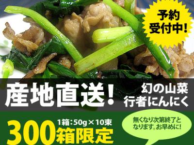 春を告げる幻の山菜『行者にんにく』の出荷が4月下旬頃から始まります!昔、山にこもる修験道の行者が修行の際に、荒行に耐えるための栄養補給に食べたという健康山菜(*゚▽゚)/香りがニンニクに似ていて、体力の維持・スタミナをつけるために食べた事から『行者にんにく』と名づけられたと言われています。血液をサラサラにしたり血圧を安定させたり、さらに視力の衰えの抑制にもなるのだそうです。疲労回復効果もバッチリ(*^o^*)炒め物やお浸しなど調理方法も様々です☆▼豚肉との相性もピッタリ!炒めものにすると、にんにくの香りが増して食欲をそそります。▼さっぱりとお浸しで♪▼通な食べ方は、生のまま味噌やマヨネーズをつけて♪▼行者にんにくを美味しく調理して召し上がっていただくために簡単レシピもお付けいたします。ご参考にしてみてください☆芽を出し収穫ができるまでに4年を要し、春の限られた期間だけしか収穫できない幻の山菜。旬の逸品を届けいたします♪(゚∇゚ノノ"300箱の限定販売です!無くなり次第終了となりますので、ご注文はお早めに。▼『行者にんにく』のお求めはこちらから※お届けは4月下旬頃からを予定しておりますが、融雪状況により前後する場合がございます。ご了承ください。▼行者にんにくのレシピはこちらから【ながいファン倶楽部会員募集中!】☆毎月1日・15日にファン倶楽部会員様へメールマガジンを配信♪▼お申込はこちらから!