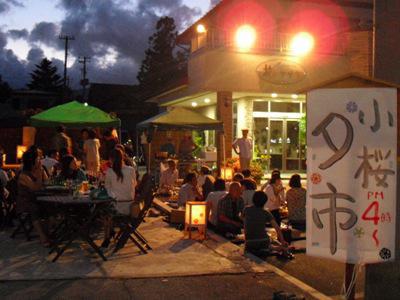いつもは最終日曜日の朝6時から開かれる「小桜朝市」が今回限定『夕市』として25日(日)午後4時から行われました!!浴衣でいらっしゃいませ〜♪子ども達はお茶の間「あしぇる」のミニ縁日で大ハシャギ(*^-^*)ヨーヨーつりの他、おもちゃ輪投げ。夜には大人参加の輪投げも登場して大盛り上がり!近所の方が夕飯に〜とお買い物にいらしたり、その場で食べて行かれたり。朝市とはまた違った雰囲気がありました(*゚O゚)ノ6時の『バナナのセリ市』品物いっぱい持って登場〜!!「このバナナ、いくらで!?」「50円」「100円」「200円」・・・「400円」 「売った!」バナナだけじゃなく桃・ぶどう・トマト・長いも・いも煮セットが♪子どもも参加できて和気あいあいの競りに(*^-^*)b張り切って参加!バナナといも煮セット、桃をお持ち帰りしました☆(買い過ぎ!?▼焼いても焼いても売り切れていた焼き鳥★食べたかったなぁ〜▼夕飯はこれに!「新作!バーニック汁」 馬肉の他に麩も入ってました♪「シソのみそ焼きおにぎり」 デザートにはJiemさんの新作パウンドケーキをGet!ごちそうさまでした(*^人゚*)試作中とのことでしたが、ふわっと安心する味で美味しかったです♪▼どこに座ろう〜(@@;)4時〜6時頃は天気が良すぎて暑い西日だったのですが、日が暮れてくると涼しい風がふいて気持ちの良い夜に・・・(〃〃)▼西日が(><)▼暗くなっても賑やか〜!終了時間いっぱいまで大勢の人で賑わっていました(*^▽^*)『夕市』は、例えると町内会のお祭りのようで、夏の終わりをめいっぱい楽しんできました♪ 帰る頃、夜空にはたくさんの星が見えました★次回の小桜夕市は“来年”らしいです(*゚O゚*)b来月はいつも通り、朝市が開催されます。 【ながいファン倶楽部会員募集中!】☆毎月1日・15日にファン倶楽部会員様へメールマガジンを配信♪▼お申込はこちらから!