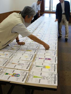 長井支部のけん玉ペインティングコンテストの一次審査が行われました!8回目の今年は、昨年より増え413点の作品が審査されました(*^-^*)日本一の生産量を誇る長井市。身近にあるものだからこそ、親しみを持って自分だけのオリジナルけん玉をデザインしているのかなぁ〜と(*゚O゚*)学年毎に並べ、1枚1枚真剣に目を通し「おー」「書き込まれたデザインだ」「立体を見てみたい」とたくさんの良い作品を前に苦戦の先生(><)デザインはもちろん、作品に書かれたポイント、コメントにも目を通し審査していました。長井支部一次審査を通過した方には学校を通じて、生地けん玉(無地のけん玉)をお渡しします。デザインを実際にけん玉ペイントして提出してくださいね♪長井支部のけん玉ペインティングコンテストは、全国大会一次審査を通過した作品と今回審査を通過したデザインが二次審査へと進みます!二次審査日は10月30日。作品を見るのが楽しみです(*^-^)ノ【ながいファン倶楽部会員募集中!】☆毎月1日・15日にファン倶楽部会員様へメールマガジンを配信♪▼お申込はこちらから!