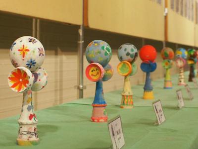 ▼【子どもたちがデザイン〜けん玉ペインティング作品展示中】