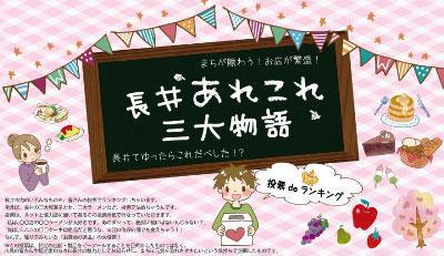ながい市民未来塾まちづくり実践講座村松ゼミから生まれた企画のお知らせです。長井のあれこれ、いろんなものをいろんなジャンルで投票してランキング♪長井の宝を掘り起こして、地域資源再発見して、まち歩きマップをつくりたいなぁという目的で行われています!その名も『長井あれこれ三大物語〜長井てゆったらこれだべした!!』例えば、今募集されてるのが長井の三大スイーツや三大ラーメンなど(*^-^*)今後は、市内の見どころや美味しいもの、名物おじさんや看板娘、好きな建物、花や樹木…え!それも?というものもランキングされちゃうかも♪♪♪市民の方も、市外の方も、ご旅行でいらした皆さんもぜひご参加ください!おすすめのお店や、美味しかったもの、好きなものを書いて投票するだけです♪投票方法は @市内のお店や公民館に置いてある『投票用紙』で Aインターネット≪長井のあれこれ三大物語サイト≫で B今すぐ!という方、下からそれぞれの投票画面に移動できます♪ 今投票を受け付けている“長井の三大○○”はうまいものランキングで5種類! ★洋菓子→ 投票フォーム ★和菓子→ 投票フォーム ★ラーメン→ 投票フォーム ★そば→ 投票フォーム ★和麺類(うどんなど)→ 投票フォーム3月17日までの中間ランキングもでてます(*^o^q)おすすめを教えてくださいね!新発見、長井の宝の発掘につながるかも(〃〃)現在のランキングは僅差らしいので、最終結果が楽しみです♪【この記事は、ながいファン倶楽部のブログです】▼長井の情報いっぱいのブログは公式サイトから! ☆毎月1日・15日にメールマガジンを配信しています♪ ご希望の方は会員登録をお願いします。