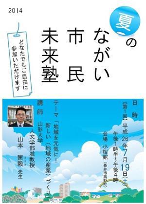 長井市では、この地域のことを深く知り、まち歩きなどをしながら楽しく学ぶ「ながい市民未来塾」が平成22年度から開講されています。26年度の「ながい市民未来塾」では、より多くの方にご参加いただけるよう、土曜日に開講し、その回ごとに参加者募集を行うことになりました! 経験豊富な講師陣のもとで、楽しくてためになる内容の「ながい市民未来塾」です。市民の皆さん、ぜひご参加ください!!■第1回 ながい市民未来塾 テーマ: 地域を元気に! 新しい≪地域の産業≫づくり 内 容: 地域経済を成長させる「基盤産業」と地域生活を豊かにする 「ソーシャルビジネス」について学び、長井にはどんな地域 産業の可能性があるのかを探ります。 講 師: 山形大学 人文学部准教授 山本 匡毅 (やまもと まさき)先生 日 時: 平成26年7月19日(土) 13時30分〜16時00分 場 所: 小桜館 対象者: 市民または市内に通勤、通学している人 受講料: 無料 申込期限: 平成26年7月17日(木) 申込方法: 長井市企画調整課 地域戦略室 TEL 0238-87-0817 ≪詳しくはこちら(長井市ホームページ)≫講師の山本先生は、研究機関で地域産業について幅広く調査された経験があり、先端産業から集落の買い物支援サービスなどのソーシャルビジネスまで、幅広く見識を持っている先生だそうです。“ソーシャルビジネス”に視点を置いて学んでみてはいかがですか(*^-^*)【この記事は、ながいファン倶楽部のブログです】☆毎月1日・15日にファン倶楽部会員様へメールマガジンを配信♪▼前の記事・お申込はこちらから!