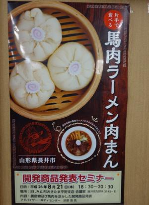 8月21日、長井市雇用創造協議会が地元飲食店などと協力して考案した『馬肉ラーメン肉まん』 の試食会が開かれました。▼試食会には約20名が参加事業構想や今までの検討会、試作の報告から始まり、馬肉らーめん肉まんの話に・・・!長井市雇用創造協議会は、昨年夏に発足。事業の一つとして、飲食店や農家などと協力しながら、地元農産物や長井名物馬肉を使った加工品の考案し、試作などをしているそう。▼その中で生まれたのが、今回の「馬肉ラーメン肉まん」ナルトがのってます。なんとな〜く馬肉ラーメンはあのソーセージのイメージですが♪(*^▽^)/ 長井で親しまれている「馬肉ラーメン」がまさか肉まんになっちゃうとはΣ(’ロ’*)と思いましたが、10品以上を試作して最後まで残ったのが「肉まん」なんだそう!▼馬肉ラーメン肉まんの中身は・・・馬肉チャーシューがごろっと&メンマとねぎも顔を出してます。もちろんラーメンの麺も!麺の下には馬肉あんとのことですが…▼ドキドキの試食タイム!ひとくち食べて、ん??ふたくち食べて、あっラーメン。3口目でこれなんだろ、メンマか〜!と(〃▽〃)ゞ味付けは、馬肉チャーシューとラーメンの味!コショウが効いていてスパイシーで、おいしかったです〜(*^-^*)ボリュームがあっておなかいっぱいになりました。この『馬肉ラーメン肉まん』は8月30日(土)にの全国馬肉サミット inながい産業フェアの長井市雇用創造協議会ブースで振る舞われます!気になった方、ぜひご来場いただき、試食してみてください(*’▽’)/さらに今後、馬肉ラーメン肉まんのレシピ・つくり方を公開し、市内関連店舗で販売できるようにしていくそうです。どうなるか楽しみです。▼パッケージにはバーニックが♪【この記事は、ながいファン倶楽部のブログです】☆毎月1日・15日にファン倶楽部会員様へメールマガジンを配信♪▼前の記事・お申込はこちらから! ※ながいファン倶楽部のブログで使用している写真は、私たちが 一生懸命撮った写真です。勝手にお使いにならないでくださいね♪