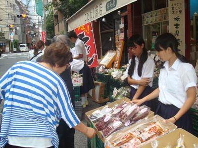 10日に行われた長井南中2年生による販売体験は修学旅行での選択コースの1つで、場所は新宿区にある「早稲田商店街」(*^-^*)b▼よろしくお願いします!約30名が2班に分かれて山形、長井の美味しいものを味わってもらおうと、野菜と果物を準備して、販売開始です♪今が旬のぶどうや桃、早生のりんごの他、長井で取れたきゅうり、アスパラ、トマト、うす皮丸なす漬、玉こん、長井の水などなど!▼お店に見に来てください〜!▼皆さんに美味しいものを食べていだたきたくて、たーっくさん準備してきました♪どれだけたくさん・・・?(@@)ご協力いただいたこだわり商店の店長さんいわく、他に販売体験されている学校の4倍の量とか(〃〃)▼続々と手に取っていただけました(*’O’*)ところが・・・販売開始から大勢の方に足を運んでいただき順調に販売していたのですが突然!!!▼雨が!あっという間に・・・ゲリラ豪雨??('ロ' ;)ものすごい雨に見舞われましたが、準備した商品は見事完売!!皆さんお疲れ様でした&カゼひいたりしてませんか(><)お買い物にいらしていただいたみなさん、ご協力いただいたみなさんありがとうございました!【この記事は、ながいファン倶楽部のブログです】☆毎月1日・15日にファン倶楽部会員様へメールマガジンを配信♪▼前の記事・お申込はこちらから! ※ながいファン倶楽部のブログで使用している写真は、私たちが 一生懸命撮った写真です。勝手にお使いにならないでくださいね♪