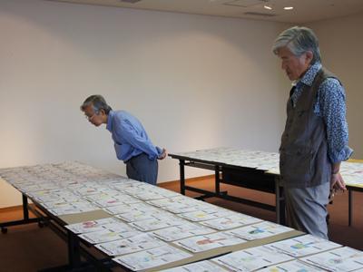 長井支部のけん玉ペインティングコンテストの一次審査が行われました(*^-^)/今年9回目を迎える長井支部のコンテストには市内の小学生・中学生の他市内外の高校生からも応募があり454点の作品が提出されています!(@@)年々出品作品が増えてるんですよ〜♪学年ごと並べ、一枚一枚じっくり審査!!よい作品、よく書き込まれた作品が多いなぁとつぶやき、苦心しながら審査。デザイン、作品に描かれたコメントやポイントも大きな審査材料なんです。長井支部一次審査で選ばれた方には学校を通じて「木地けん玉」をお渡ししますので、実際にデザインをペイントして二次審査に出品してくださいね。長井支部のけん玉ペインティングコンテストは、全国大会一次審査を通過した作品と今回の審査を通過した作品が二次審査へと進みます。二次審査日は、10月31日です。素敵な作品待ってます!【この記事は、ながいファン倶楽部のブログです】☆毎月1日・15日にファン倶楽部会員様へメールマガジンを配信♪▼前の記事・会員お申込はこちらから!