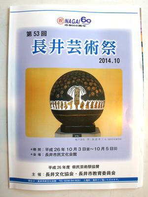 今日から5日(日)までの3日間、長井市民文化会館で「長井芸術祭」が行われています。▼開幕式典の様子 会場1階〜3階、それぞれに作品が展示され見て回ることができます♪さまざまな作品が展示されています(*^‐^*) ▼お花の花道(〃▽〃)初日の今日は生け花の実演があったり、3日間を通して例年にない実演があるそうです。ぜひ足を運んでご覧になってくださいね♪展示期間:平成26年10月3日(金)〜5日(日) 午前10時〜午後6時まで(最終日は午後5時まで)入場料:無料≪お問合せ≫長井市民文化会館 84-6051主催:長井文化協会 長井市教育委員会【この記事は、ながいファン倶楽部のブログです】☆毎月1日・15日にファン倶楽部会員様へメールマガジンを配信♪▼前の記事・お申込はこちらから! ※ながいファン倶楽部のブログで使用している写真は、私たちが 一生懸命撮った写真です。勝手にお使いにならないでくださいね♪