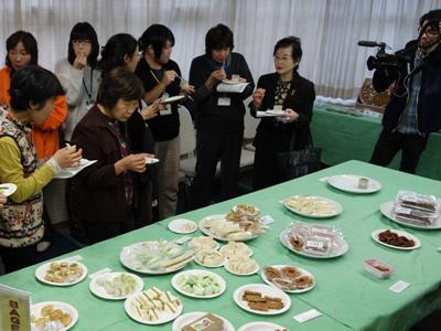 在来枝豆『馬のかみしめ』を使ったオリジナルスイーツの発表会が行われました!和・洋それぞれのお菓子屋さんが考案したスイーツ達はとってもおいしそう(*^-^*)ゞ▼ずら〜と並んだスイーツを前に、まずは馬のかみしめの説明を...▼馬のかみしめ模様がある、平べったい豆です(*’O’)b☆馬のかみしめは一度途絶えたと思われていたのですが、発見され、 栽培を始めてから10年が経過たち、近年では生産も軌道に乗り、さら に枝豆としてはもちろん、加工品としてもコクのある味が話題になって いる逸品。その「馬のかみしめ」をそのまま使ったりつぶしたり、きなこにしたものを使用したりしたオリジナルスイーツは現在販売されているものもあります。▼6年目の今年も新作が登場♪▼新作や現在販売中のスイーツの試食も(〃〃) ど・れ・に・し・よ・う・か・な?と迷う暇もなく、全部xxxおなかいっぱい(#^-^#)ごちそうさまでした♪販売されている馬のかみしめオリジナルスイーツは製造元の市内菓子店などでお求めいただけます。機会がありましたらお試しください!【この記事は、ながいファン倶楽部のブログです】☆毎月1日・15日にファン倶楽部会員様へメールマガジンを配信♪▼前の記事・お申込はこちらから! ※ながいファン倶楽部のブログで使用している写真は、私たちが 一生懸命撮った写真です。勝手にお使いにならないでくださいね♪