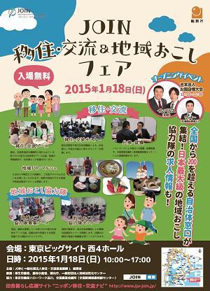 都市から地域への移住や交流を底新するための全国的な組織JOINと総務省の共催で行われる「JOIN 移住・交流&地域おこしフェア」に長井市からも参加します(*^▽^*)ノ今年は全国から200を超える自治体窓口が集結!田舎暮らしに役立つ様々な情報や地域のPRなどを行います(*b゚O゚)b開催日:平成27年1月18日(日) 10:00〜17:00会場:東京ビッグサイト 西4ホールそれぞれ地域ごとにブース、セミナーやPR、マルシェなどが予定されています。このイベントでは、"地方"への移住・交流者のさらなる拡大を目的として全国各地の田舎暮らしに役立つ様々な情報の発信と、人口減少や高齢化等が著しい地方自治体が都市住民を受け入れる「地域おこし協力隊」の隊員を募集するそう!興味のある方、田舎暮らしが気になる方、足を運んで見てはいかがですか(*^-^*)長井市のブースを発見したら足を止めてご覧になってくださいね♪【この記事は、ながいファン倶楽部のブログです】☆毎月1日・15日にファン倶楽部会員様へメールマガジンを配信♪▼前の記事・お申込はこちらから!
