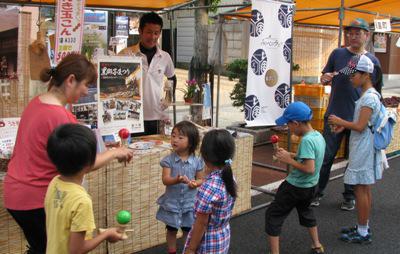 先日ブログでお知らせした、「山形観光物産市」に出店してきました〜(^O^)/連日猛暑日が続いている山形・・・この日も朝から30度を超えるあっつい日!アスファルトには陽炎が立つ中、花笠まつりを目前に商店街はもっと熱く盛り上がっていましたよ〜♪予告通り、けん玉・玉こんにゃく・うさぎ玉などなど丸くってカワイイものをたっくさん持っていきました(*^_^*)開店すると、すぐ子供たちが集まって来てくれて、初心者も経験者もみんなでけん玉練習会の始まり!けん玉ファン健在(^^)/長井市が競技用けん玉生産日本一であることが、少しずつ認知されてきているようでした。うれしいですね(*^。^*)?【この記事は、ながいファン倶楽部のブログです】☆毎月1日・15日にファン倶楽部会員様へメールマガジンを配信♪▼前の記事・お申込はこちらから! ※ながいファン倶楽部のブログで使用している写真は、私たちが 一生懸命撮った写真です。勝手にお使いにならないでくださいね♪