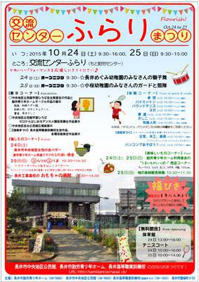 朝晩と日中の寒暖差で、長井市周辺の山々も徐々に色づき、秋本番に突入!といった感じです^_^週末ごとにあちこちで楽しいイベントが開かれ、賑わっていますよね(*^_^*)この時季恒例の「交流センターふらりまつり」が今週末開催されます♪公民館・勤労青少年ホーム・高等職業訓練校合同のおまつりで、趣味の教室の発表展示や、木工・左官などの技能展示、バザーや売店などなど盛りだくさん(*^。^*)オープニングではめぐみ幼稚園・小桜幼稚園の園児によるかわいいパフォーマンスも(^^♪テニスコートは終日無料開放されます!過ごしやすい秋の一日、是非ご家族でお楽しみ下さい(^O^)/いつ : 10月24日(土) 9:30〜16:00 10月25日(日) 9:30〜15:00どこで : 交流センターふらり(旧勤労センター)【この記事は、ながいファン倶楽部のブログです】☆毎月1日・15日にファン倶楽部会員様へメールマガジンを配信♪▼お申込はこちらから! ※ながいファン倶楽部のブログで使用している写真は、私たちが 一生懸命撮った写真です。勝手にお使いにならないでくださいね♪