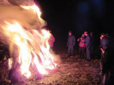 積雪のないまま、成人の日を迎えた長井市です。とはいえ、長井市の成人式は夏に行われますので、連休中市内の各地区は小正月の伝統行事『ヤハハエロ』に賑わいを見せました。『ヤハハエロ』(さいと焼き・どんど焼きなどと呼ばれる事も)は、去年収獲した稲わらで作られた、高さ4〜5メートルにもなる「斎塔」に、古いお札やお守り・正月飾りなどを入れて焚きあげ、豊作や無病息災などを祈る大事な行事です。「弥栄えろ(いやさかえろ)」が訛って「ヤハハエロ」になったそうです(*^_^*)「斎塔」へと続くあぜ道は点々と灯りで縁取られ、幻想的な雰囲気に・・・これは子供たちの仕事♪今年は雪がない分、田んぼがぬかるんで、長靴も泥だらけに・・・(+_+)いよいよ火が入れられ、周りにいた人達が火を囲んで集まり始め・・・すると誰からともなく、火に向かって「ヤハハエロ〜!」と掛け声が。大きな声を出す事で、悪いものが火と一緒に飛んでいくのだそう(*^-^*)「斎塔」の側にはテントが張られ、甘酒や玉こんにゃくなどのお振る舞いもありました(*^。^*)子ども達もたくさん集まって賑やかに♪伝統的な行事が若い世代にしっかり受け継がれていくと良いですね。【この記事は、ながいファン倶楽部のブログです】 ☆毎月1日・15日にメールマガジンを配信しています♪ご希望の方は会員登録をお願いします。