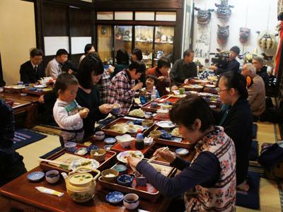 長井の伝統野菜「花作大根」の普及活動の一環として、毎年この時期に開催される「花作大根で蕎麦をいただく会」。7回目となる今年は伊佐沢地区の「獅子宿燻亭」で開かれました。▼会場の「獅子宿燻亭(ししやど いぶしてい)」茅葺古民家を利用した蕎麦屋さん。その名の通り、店内にはたくさんの「黒獅子」があります。▼花作大根(はなづくりだいこん)普通の大根の3分の1程度の長さと円筒形の形、そしてすりおろした時の強烈な辛味が特徴的。花作大根は、市内花作町を中心に置賜地方で江戸時代から栽培されてきた長井の伝統野菜です。一時期栽培が途絶えていたものを10数年前に復活させ、普及活動が行われています。近年は漬物以外の様々な料理や加工品にも利用され始め、蕎麦の薬味もそのひとつ。▼美味しそうな蕎麦に、▼花作大根おろしを薬味として食べます…一口目で思わず「か、辛い!」と言ってしまいました(>Д