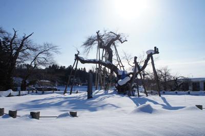 久保の桜は老木中の老木。冬の間に枝が折れたり、幹に虚が出来たり、心配事が多いです。例年ならもっと雪が深くて観察もままならないのですが、春にまた美しい花を咲かせてもらえるかな・・・という思いもあって、この時季に見に行ったりします。華やかな姿とはかけ離れていますが、本来の久保の桜を見るようでこれも
