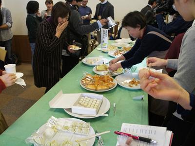 11月29日、馬のかみしめを使ったオリジナルスイーツの新作発表会がありました!ブログでも何度か紹介している長井在来の枝豆、馬のかみしめ。咬めば咬むほどコクのある味わいが出てきます。▼表面に馬の咬んだような模様がついているのが特徴。新作10点を含む15種類のスイーツが並びました(*´∀`)市内の菓子職人から商品の説明があった後、関係者が思い思いのスイーツを試食。▼パン、もち、中華まん、ケーキなどなど…どれもおいしそう♪ すりつぶしてクリームにいれたり、蒸したものを生地にいれたりと加工方法は様々でしたがどれも豆の風味が活きていて好評でした。この中から次の長井名物がうまれるかも( ・∀・)●馬のかみしめ関連商品はこちら●【この記事は、ながいファン倶楽部のブログです】☆毎月1日・15日にファン倶楽部会員様へメールマガジンを配信♪▼前の記事・お申込はこちらから!