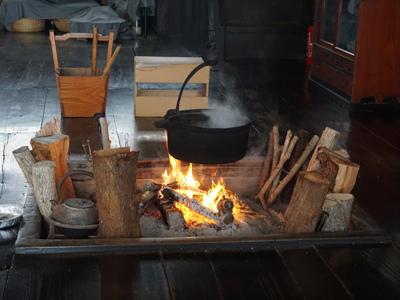 冬季休館中の「丸大扇屋」では、『燻(いぶし)』と呼ばれる冬の間の恒例行事が行われています。虫を駆除し建物を長持ちさせるために、囲炉裏に火を入れその煙で茅葺屋根を燻蒸する作業のことです。部屋の中は青白い煙が立ち込め、パチパチと薪の爆ぜる音が。囲炉裏には自在鉤(じざいがぎ)に水を張った鍋をかけて、乾燥しすぎるのを防いでいます。天井は吹き抜けるように作られており、屋根裏まで煙が廻る仕組みに。毎年冬の3カ月の間じっくりと燻され、黒光りするような独特の色合いに染まった天井。木造建築を守る先人たちの知恵に感心させられます。▼煙は屋根裏にある女中部屋を抜け、二階の格子窓から外へ。 ▼先週から降り続いた雪で、庭も母屋も覆いかぶさるように白く包み込まれて。 軒下の干し柿は、冬の間小動物の食糧になるよう、わざと吊り下げたままだそう。よく見ると、かじられた跡が・・・。 3月まで続けられる「燻」作業。春までに昨年の穢れを虫と一緒に燻し出して、新しい年のお客様をお迎えする準備が整います。【この記事は、ながいファン倶楽部のブログです】☆毎月1日・15日にファン倶楽部会員様へメールマガジンを配信♪▼前の記事・お申込はこちらから!