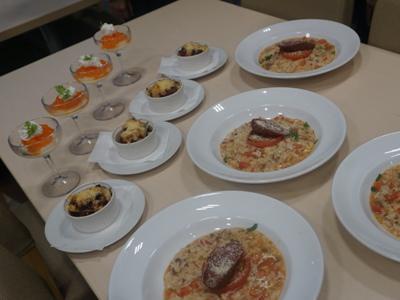 秋たけなわ。、道の駅 「川のみなと長井」のフードコーナー『ラ・ベール』では、«食材の宝庫長井市»の、様々な農産品を活かした新しいメニューが始まります。今回の新メニューは、長井高校の家庭部のみなさんが考案し、それをもとに『ラ・ベール』が仕上げたもの。完成した定食を家庭部員のみなさんが試食しに来てくれました。彩り豊かで、長井の秋の美味しいものをふんだんに使った美味しそうな献立に。▼長高家庭部A定食 ・ 大根ぎょうざ ・ 旨馬(うま)汁 ・ つや姫 ・漬物 ・ チーズパンナコッタ(小松菜入)▼長高家庭部B定食 ・ 寺泉トマトリゾット(馬肉ソーセージ乗せ) ・ 大根ラザニア ・ ベジブロススープ ・ 大根と人参のクラッシュゼリー自分たちのアイデア創作料理が、道の駅の看板メニューに(*^_^*)プロの手を経てより美味しくなった料理を味わって、皆さん笑顔があふれていました。 長高家庭部定食は、 10月13日(土)・14日(日)・20日(土)・21(日)がA定食 10月27日(土)・28日(日)・11月3(土)4日(日)がB定食の予定で販売されます。A・Bとも850円。一日10食限定です。長井のうまいもんを是非ご賞味下さいね。【この記事は、ながいファン倶楽部のブログです】☆毎月1日・15日にファン倶楽部会員様へメールマガジンを配信♪▼前の記事・お申込はこちらから!