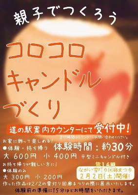外は寒くてお出かけするのが億劫になりがちな今日この頃。でも思い切って外出してみると、ちょっぴりハッピーになれるプチイベントに出会えることも(*^_^*)道の駅「川のみなと長井」では、今の時季にしかない企画をご用意してみなさまのお出でをお待ち申し上げます。〜〜〜 コロコロキャンドルつくり 〜〜〜●受付場所:道の駅川のみなと長井 観光案内カウンター●受付時間:2月2日(土)まで 9時30分〜11時30分/14時〜16時30分 (体験時間30分程。詳しくはお問い合わせください)●料金@体験&持ち帰り:大サイズ600円 小サイズ400円 平型ミニキャンドル付きA体験のみ:大サイズ300円 小サイズ200円 ■注意事項体験開始まで15分ほど準備時間を頂きます。キャンドルは外でつくりますので、暖かい恰好でご参加ください。 自分だけのオリジナルデザインを楽しんでみては?≪お問い合わせ≫やまがた長井観光局(TEL0238-87-1121)2月2日(土)には『ながい雪灯り回廊まつり』が開催されます。ぜひお手製キャンドルを飾ってイベントを盛り上げましょう!【この記事は、ながいファン倶楽部のブログです】☆毎月1日・15日にファン倶楽部会員様へメールマガジンを配信♪▼前の記事・お申込はこちらから!