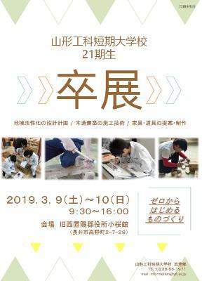 雨水を過ぎて、屋根の雪解けも加速度を増す長井市です。受験生や卒業生たちにとっては、忙しい時季になってきましたね。さて、長井市にたった一つだけある大学校「山形工科短期大学校」21期生の卒業制作展が行われます。〜〜〜 山形工科短期大学校 21期生 卒展 〜〜〜いつ : 2019年3月9日(土) 〜 10日(日) 9:30 〜 16:00どこで : 長井市 旧西置賜郡役所”小桜館” (長井市高野町2−7−28)伊佐沢の山の上にあるので、「山の学校」と呼ばれて市民に親しまれている工科短大。市内のイベントなどには学生が参加してくれることも多々。▼会場となる「小桜館」(旧西置賜郡役所)は、現存する郡役所としては全国で二番目に古い建築物。建物自体も一見の価値があります。今回のテーマは「ゼロからはじめるものづくり」。ものづくりの技術を身に付けた卒業生たちがどんな作品を展示してくれるのか楽しみです。ぜひ足を運んでみて下さいね。【この記事は、ながいファン倶楽部のブログです】☆毎月1日・15日にファン倶楽部会員様へメールマガジンを配信♪▼前の記事・お申込はこちらから!